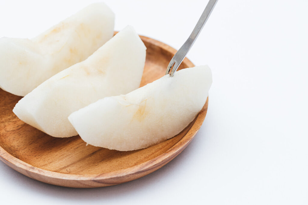 今回は天平庵の「栗パイ」と梨を提供させて頂きました。大きな一粒栗と梨で秋を感じて頂きました。